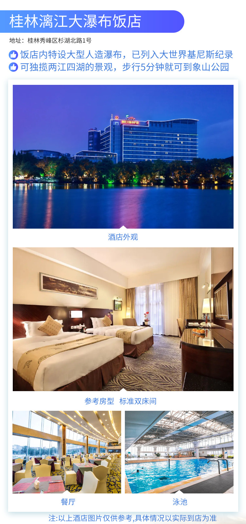 6、特别提示:因酒店部分房型数量较少,可能产生下单后因未及时付款导致无房的情况,具体请以下单付款时为准!