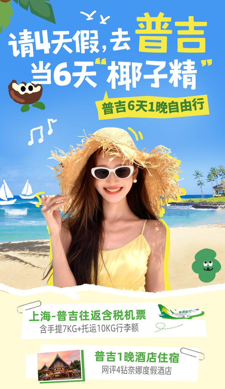 上海至普吉所选航班往返经济舱含税机票;10KG托运及7KG手提
