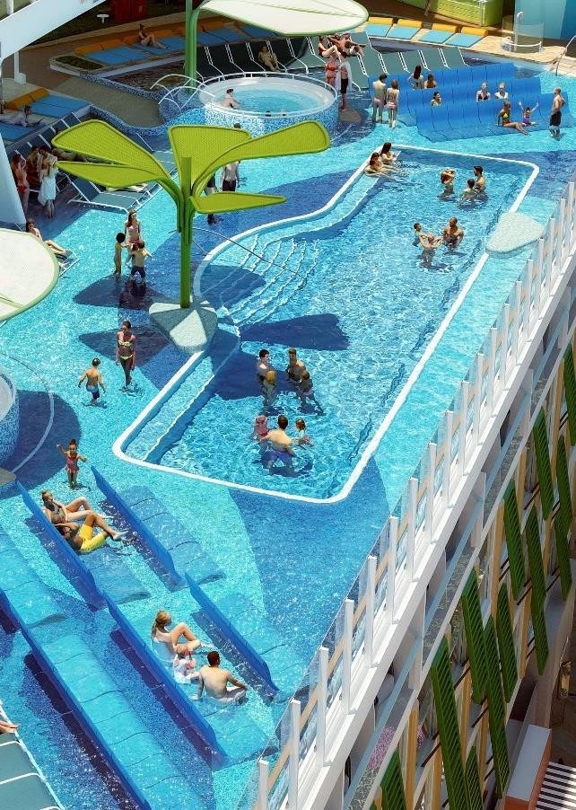 全新Oasis级邮轮海洋和谐号预计2016年4月下水试航。它是皇家加勒比邮轮公司Oasis级邮轮的第三位成员,是目前世界上最大型邮轮,它继承了创新和创造理念,为乘客打造独特的邮轮假期!同另外两艘同等级的船只一样,和谐号也被划分为7个“社区”,为您带来与众不同的海上体验、设施和活动。船上配备3个多层滑水道,迂回曲折延伸至中央公园10层以下,这将是考验您勇气的绝好机会。其中一个水道还为到达终点的乘客准备了香槟,以示奖励。