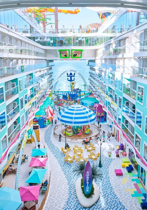 皇家加勒比海洋交响号邮轮,作为皇家加勒比邮轮旗下绿洲系列最新的成员,这艘排水量在23万吨的超级巨轮将在2018年4月首航,将在地中海度过她的首个夏秋季航季,并于2018年11月初抵达迈阿密,与她的姐妹船“海洋魅丽号”相会于被誉为“迈阿密之冠”的全新皇家加勒比游轮码头Terminal A。